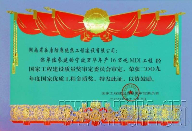 2009年度國家優(yōu)質(zhì)工程金質(zhì)獎