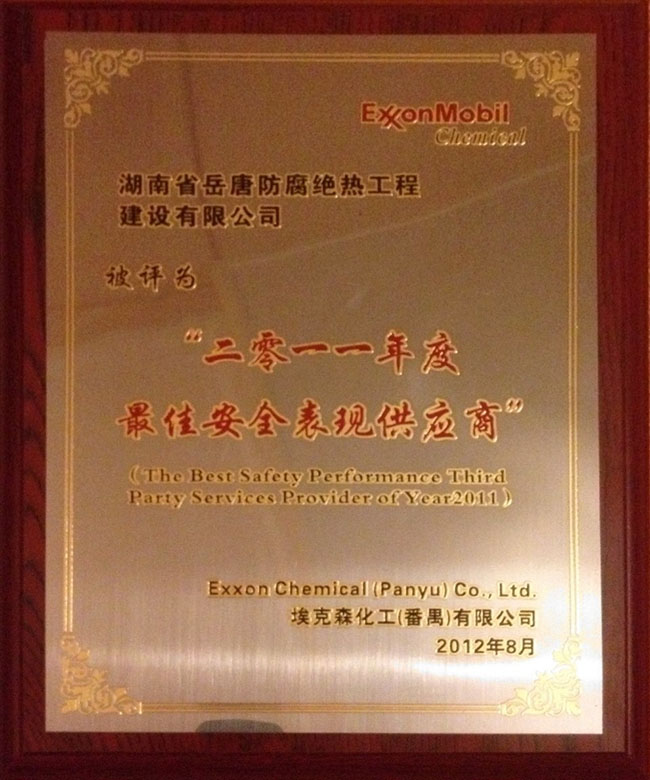 二零一一年度最佳安全表現(xiàn)供應(yīng)商